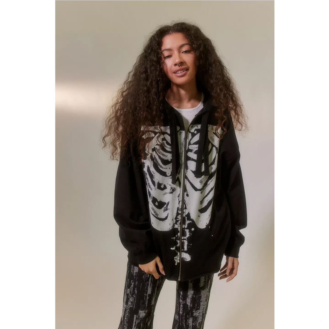 Urban Outfitters UO Skeleton Zip-Up Sweatshirt Jacket Top