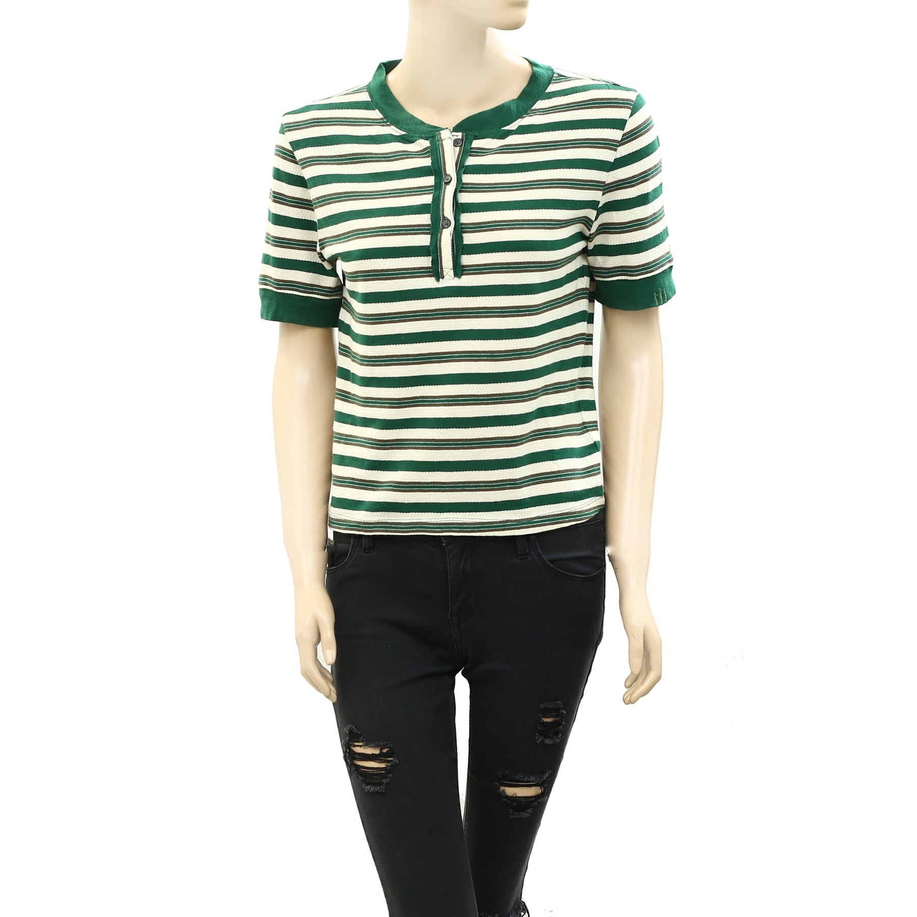 Bdg Urban Outfitters Harvey Striped Henley Blouse Top