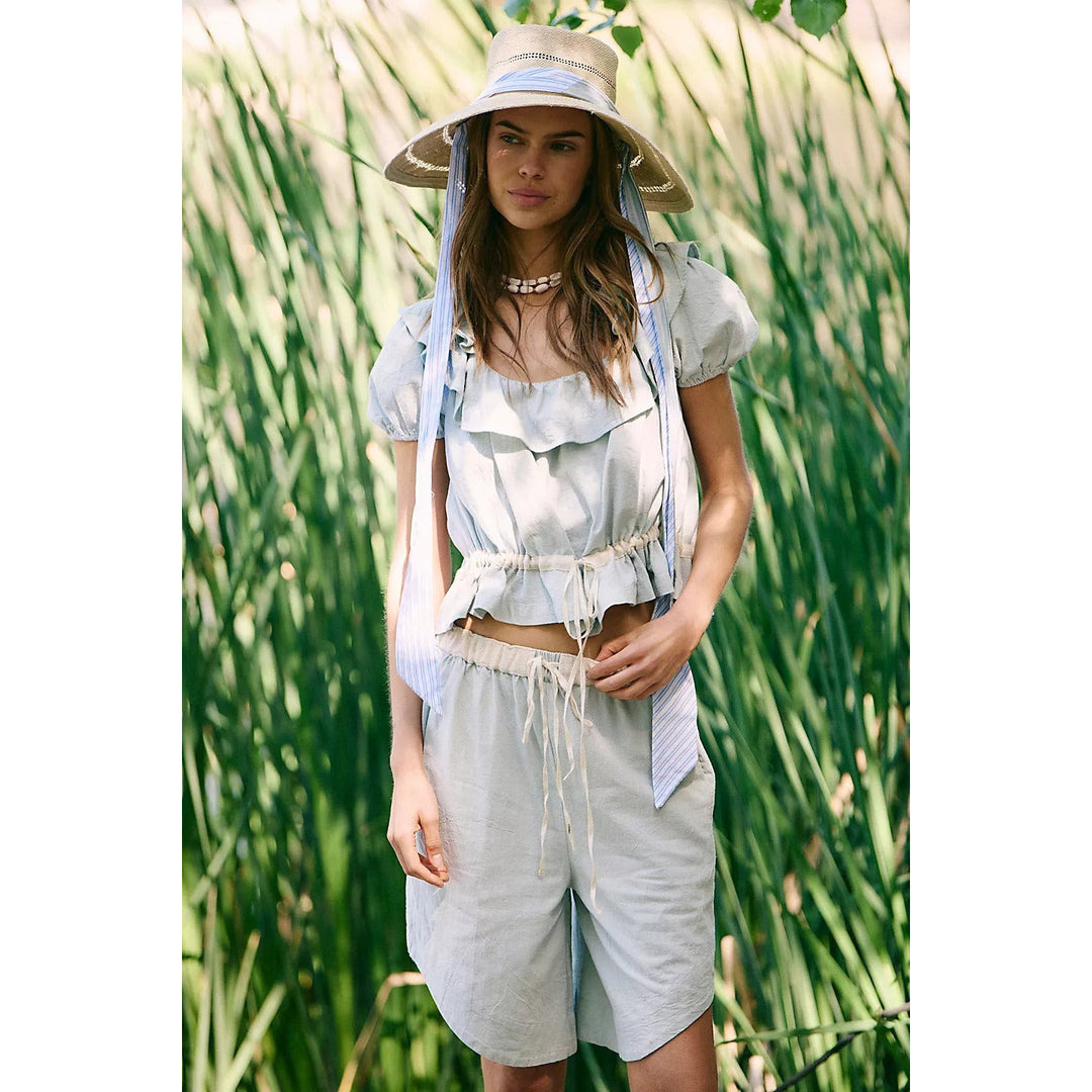 Free People Penny Seersucker Blouse Top & Midi Skirt