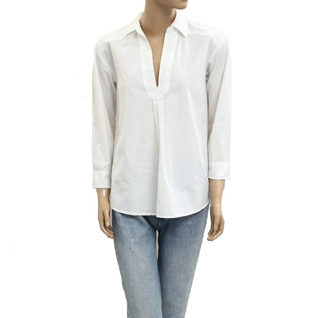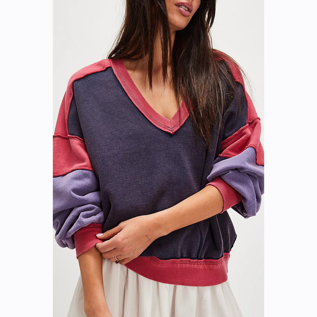 Voyageur By Mersea Frenchie Raw Edge V-Neck Sweatshirt Top