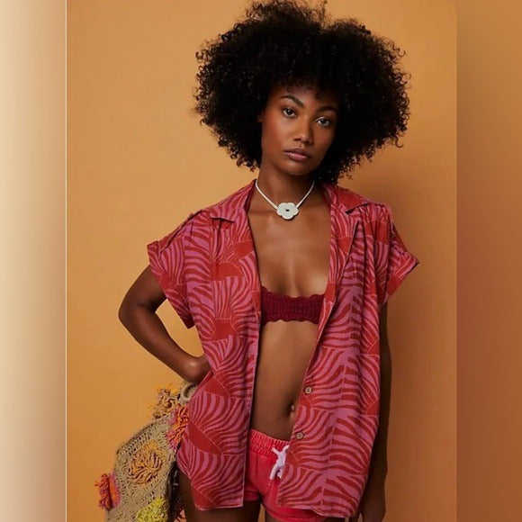 Free People We The Free Sun Splash Printed Shirt Tunic Top