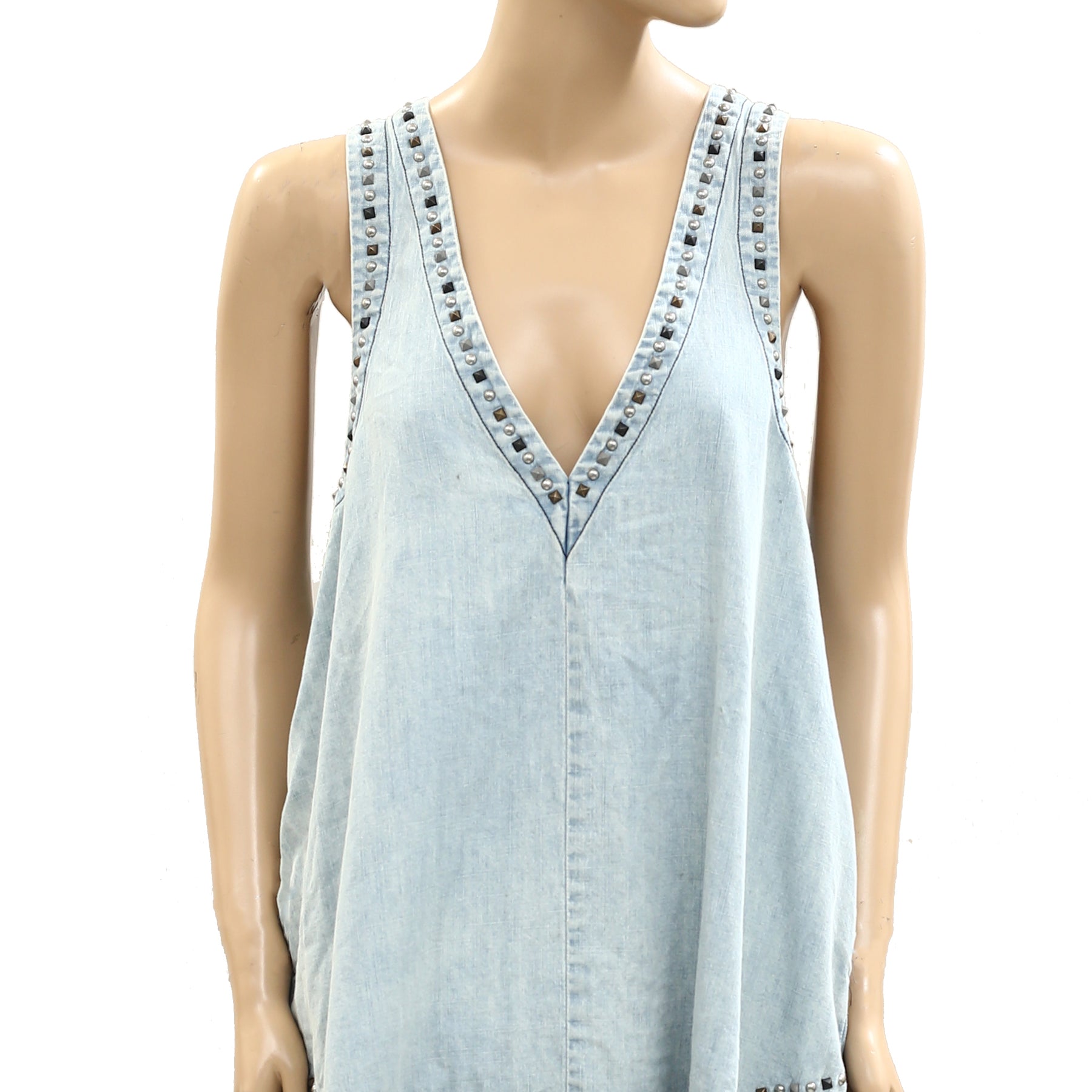 Free People Kendra Studded Denim Tunic Top