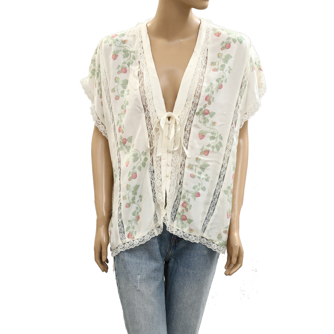 Free People Marigold Printed Shine Lace Blouse Top