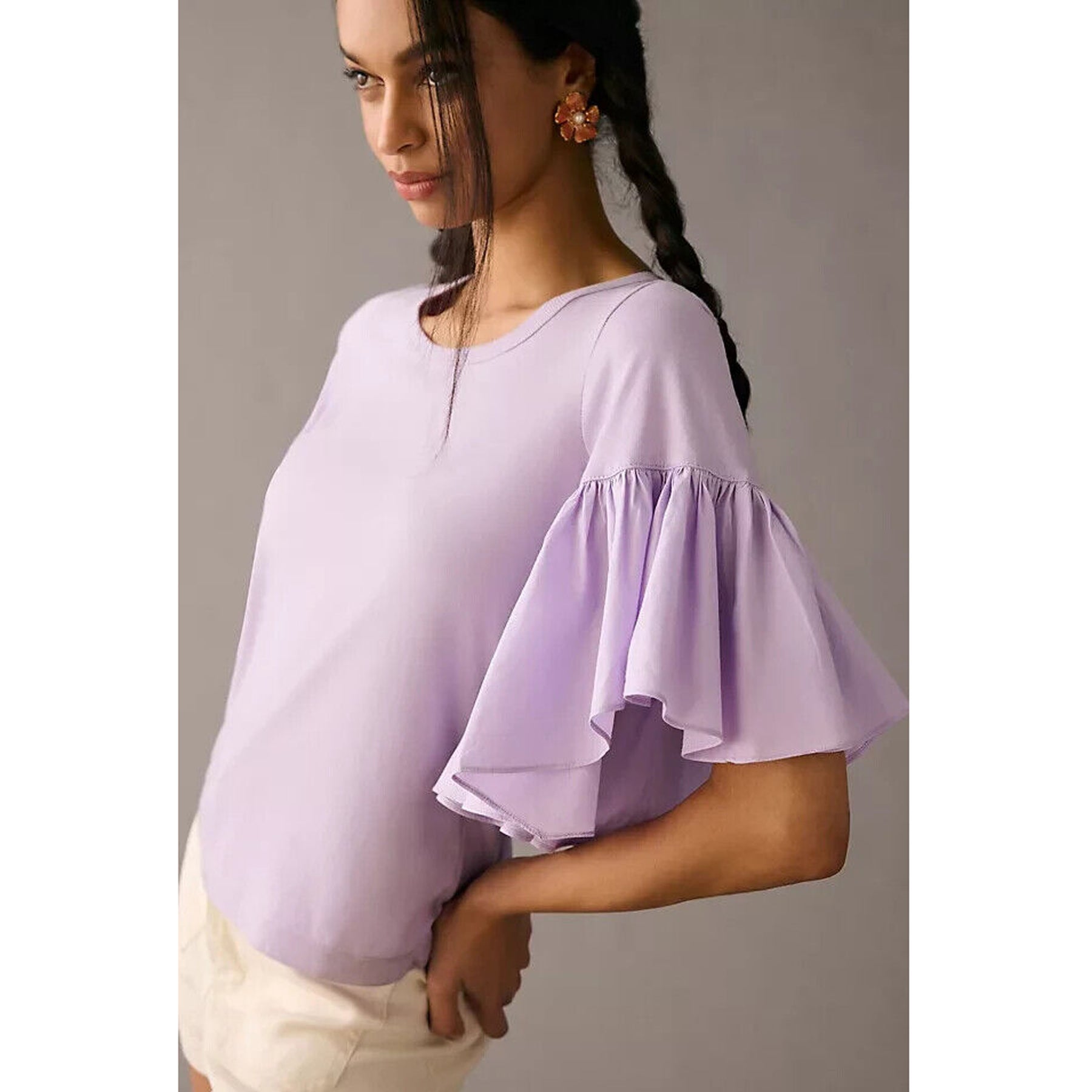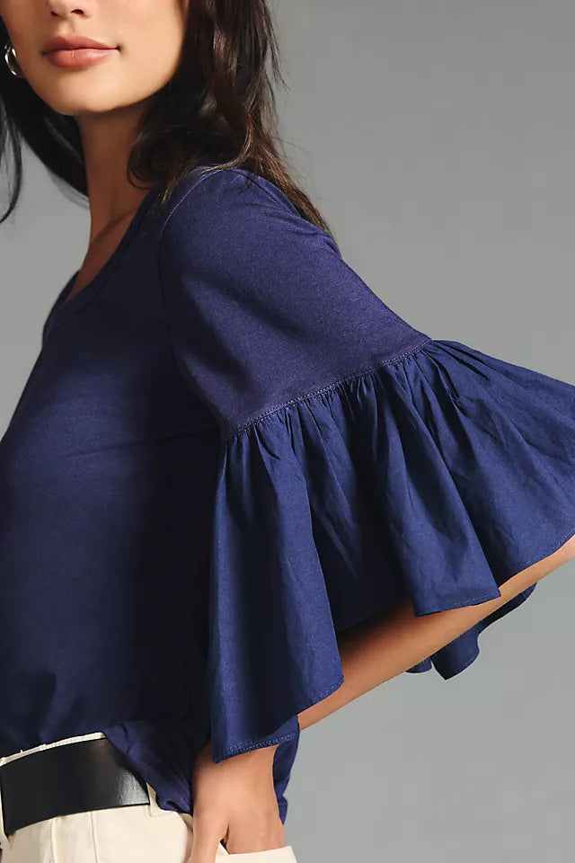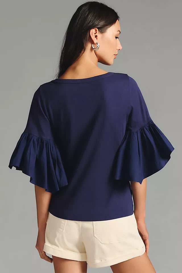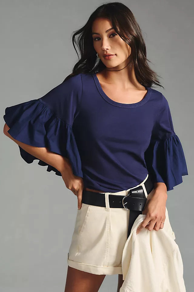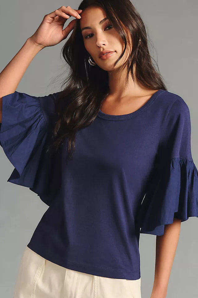 Maeve Anthropologie Ruffle-Sleeve Tee Blouse Top