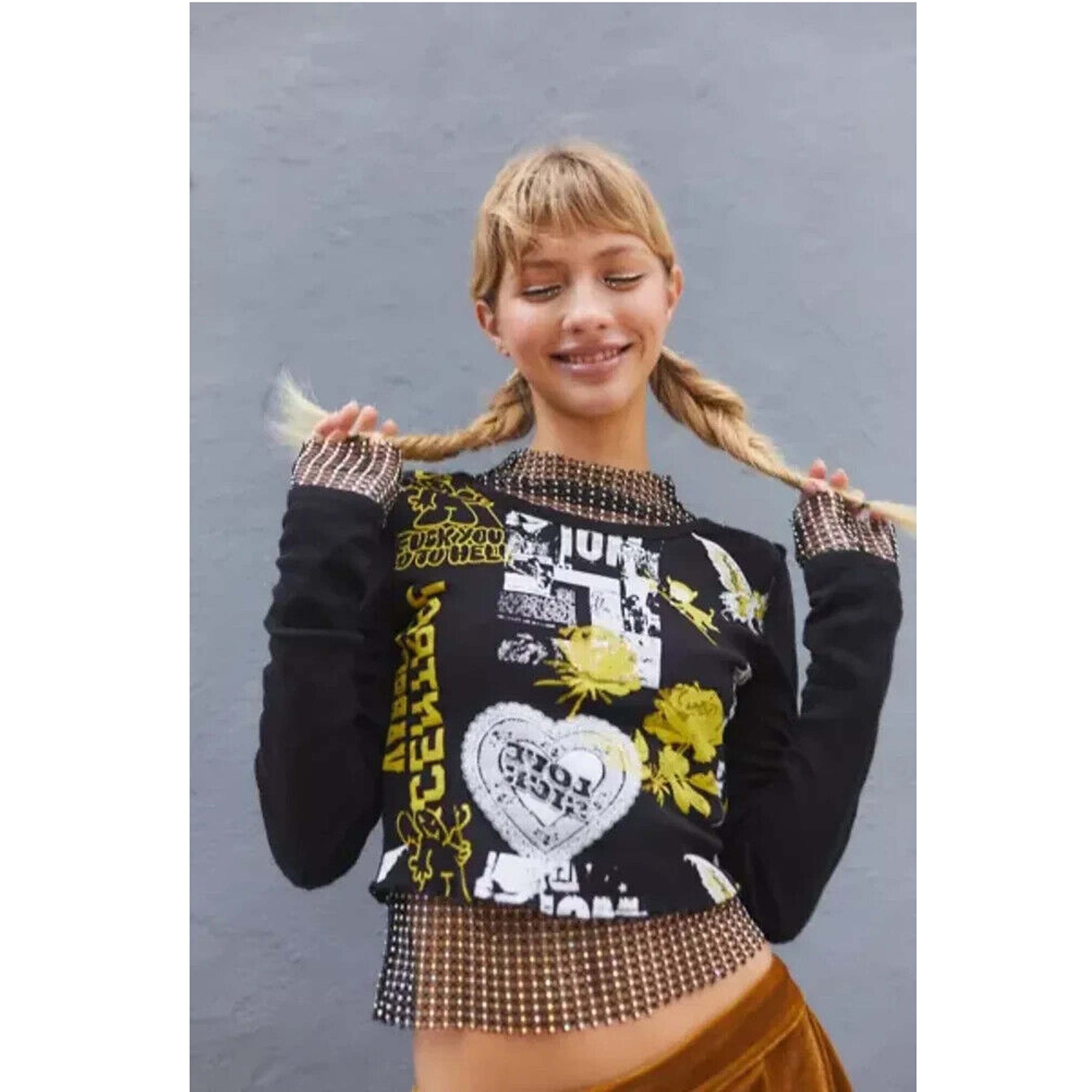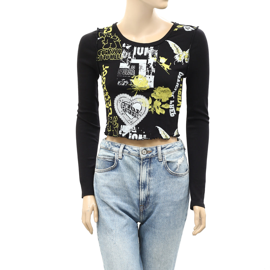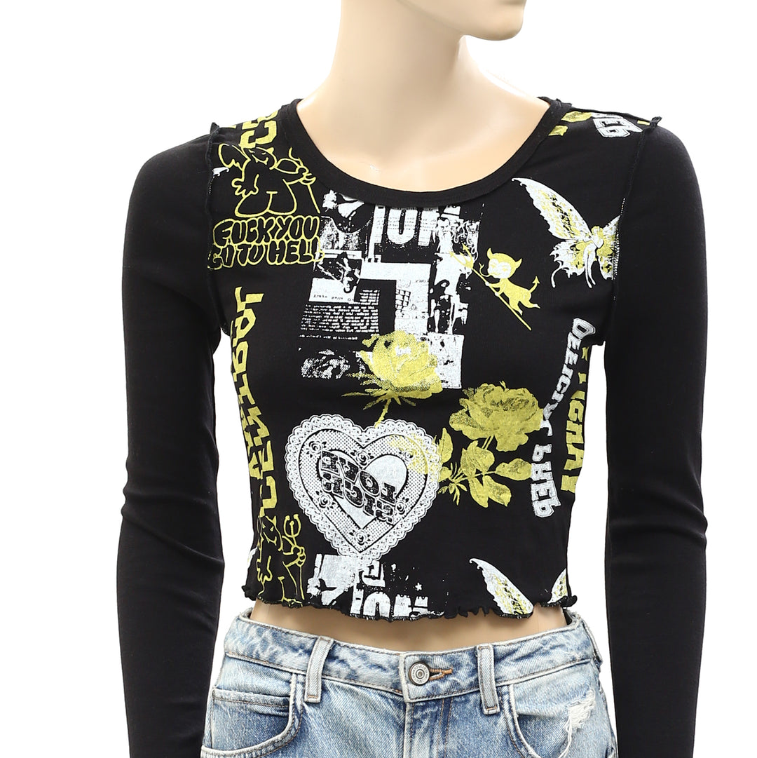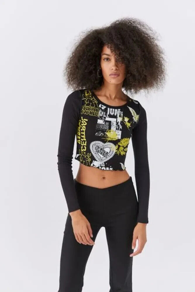 Urban Outfitters UO Fawn Zine Fitted Long Sleeve Graphic Tee Top