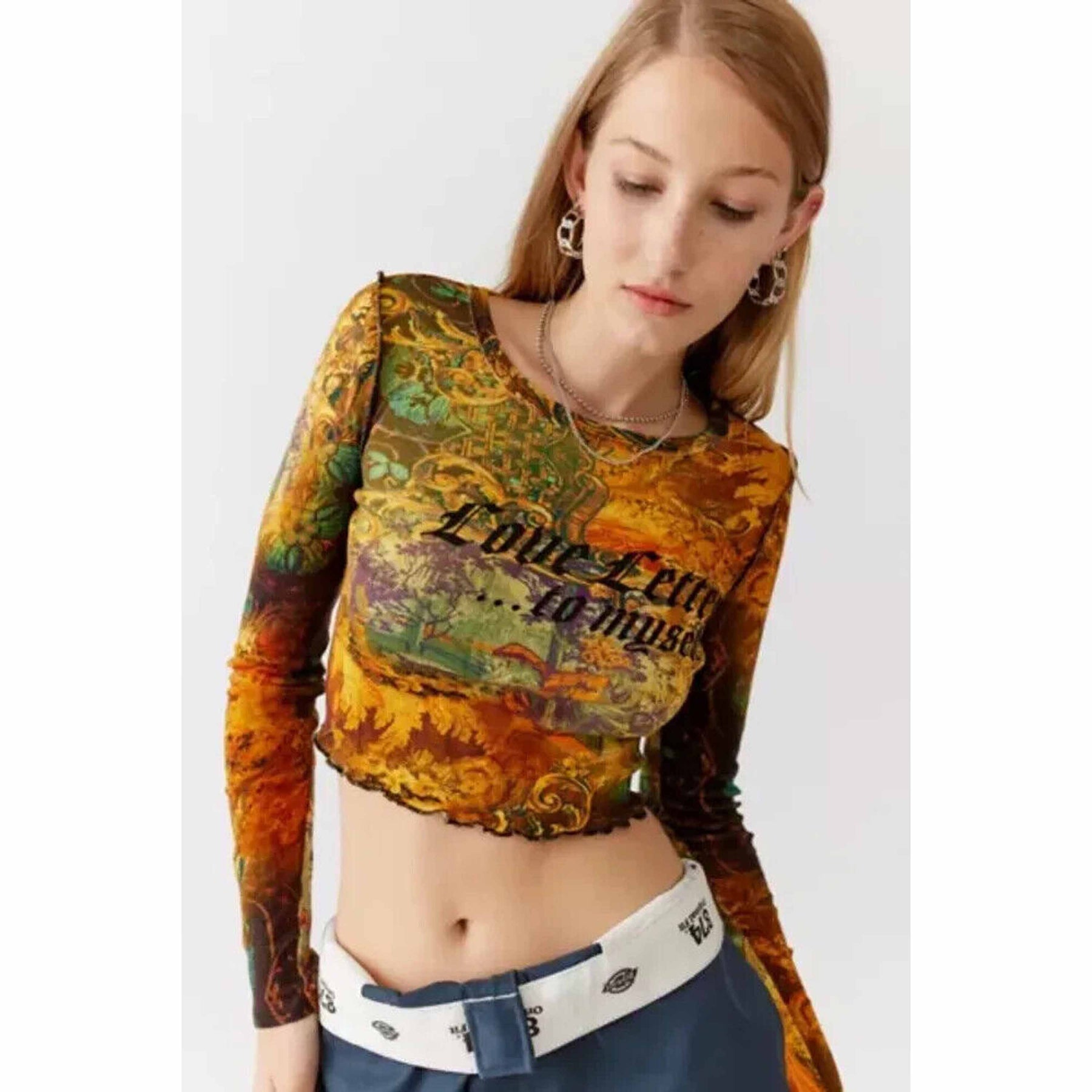 Urban Outfitters UO Love Letter Fitted Long Sleeve Tee Cropped Top
