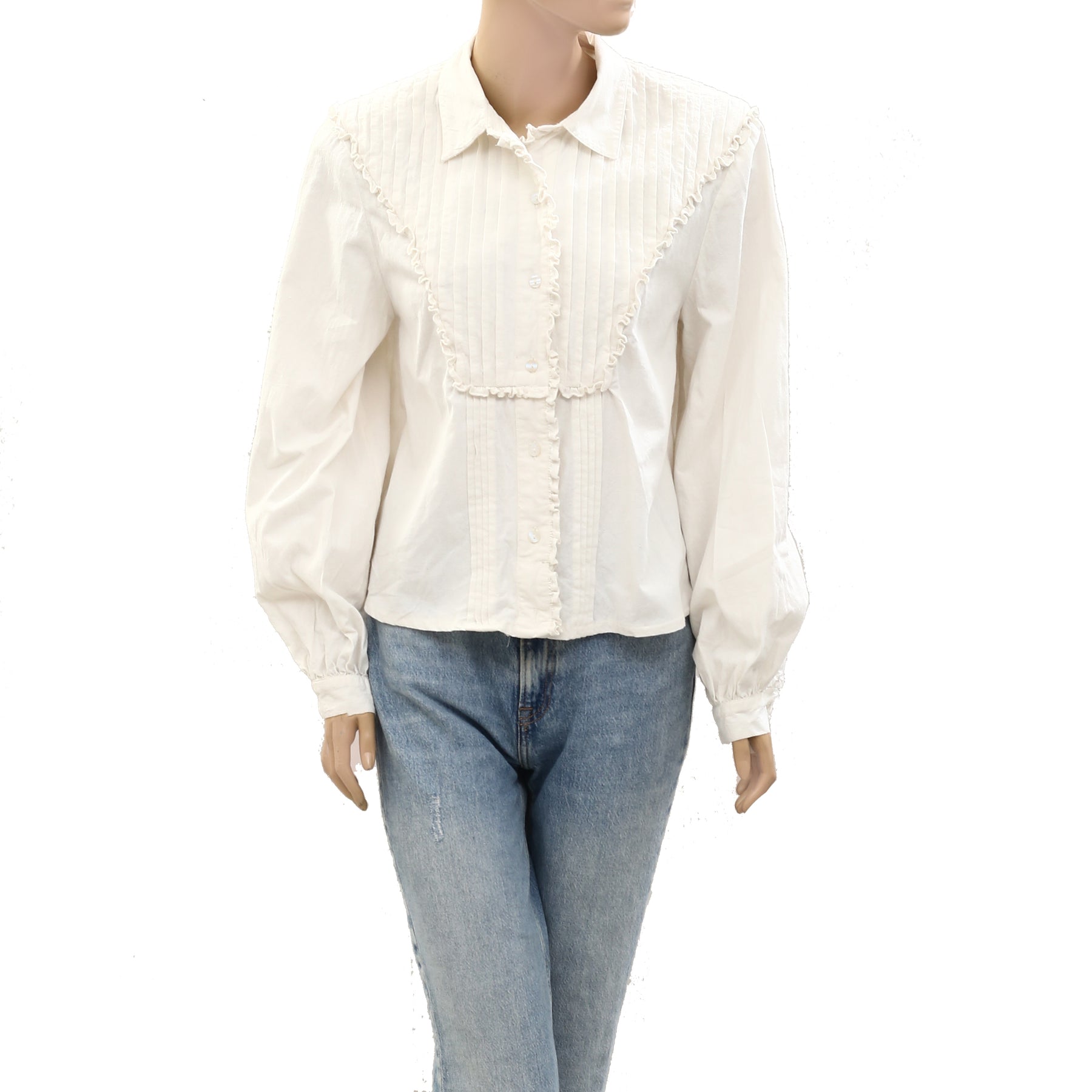 Free People Buttondown Solid Ruffle Blouse Top