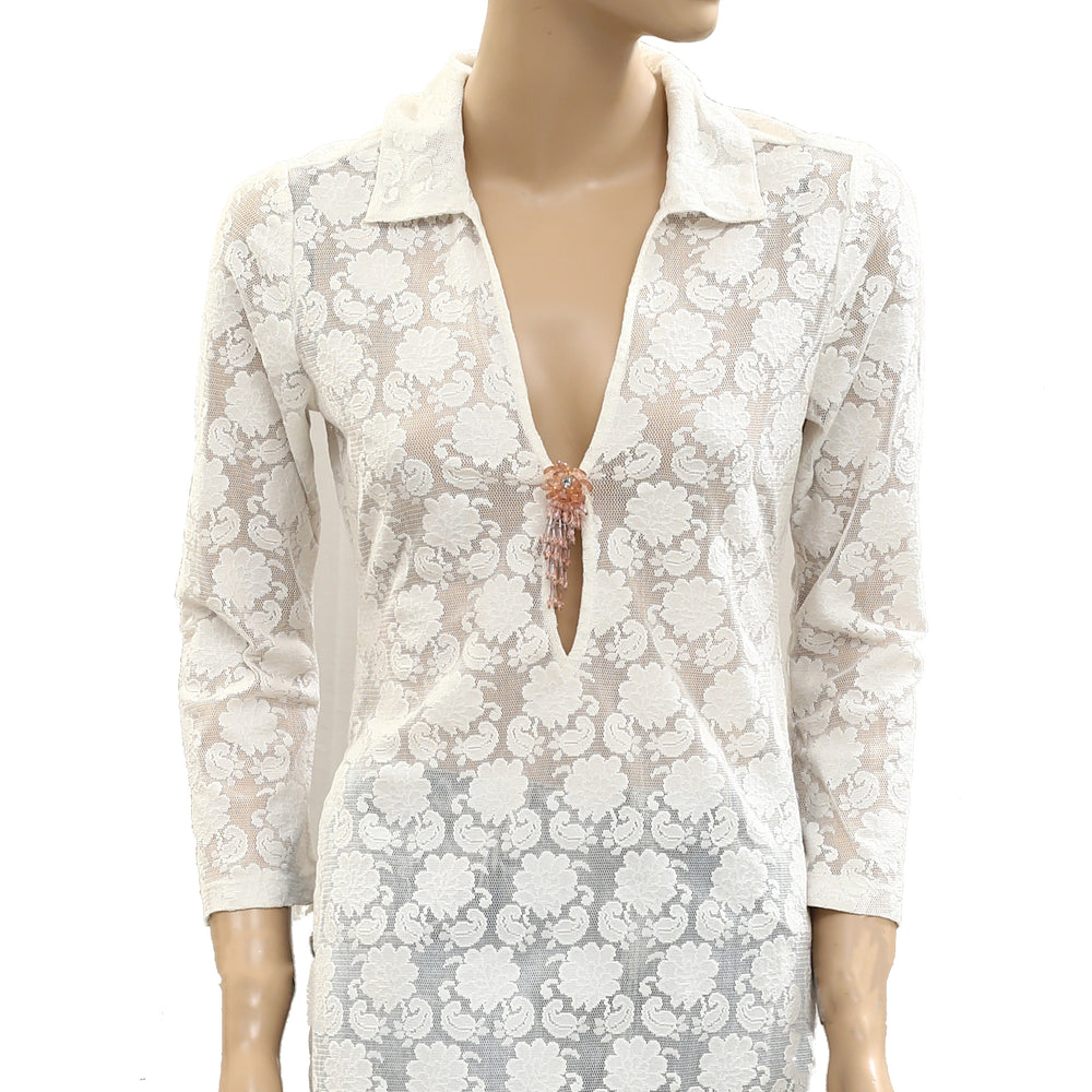 By Anthropologie 3/4 Sleeve Sheer Lace Top