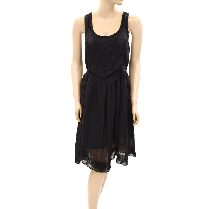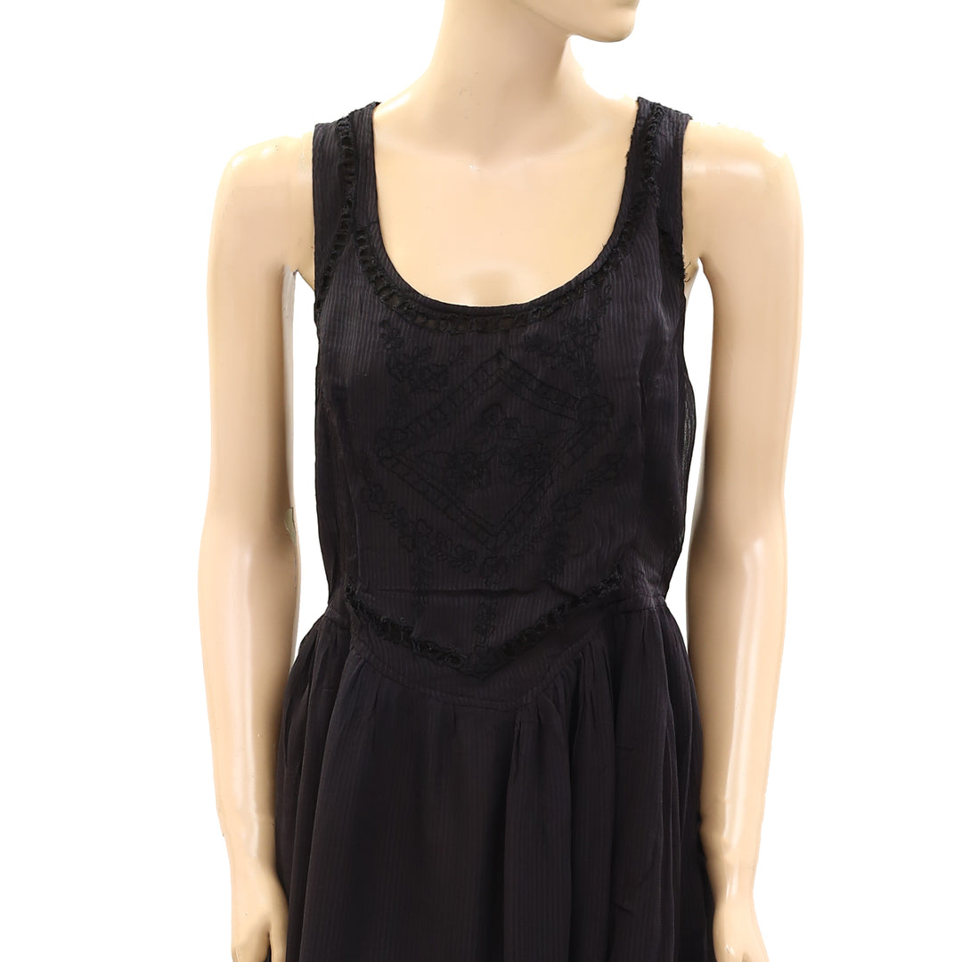 Anthropologie Striped Embroidery Mini Dress