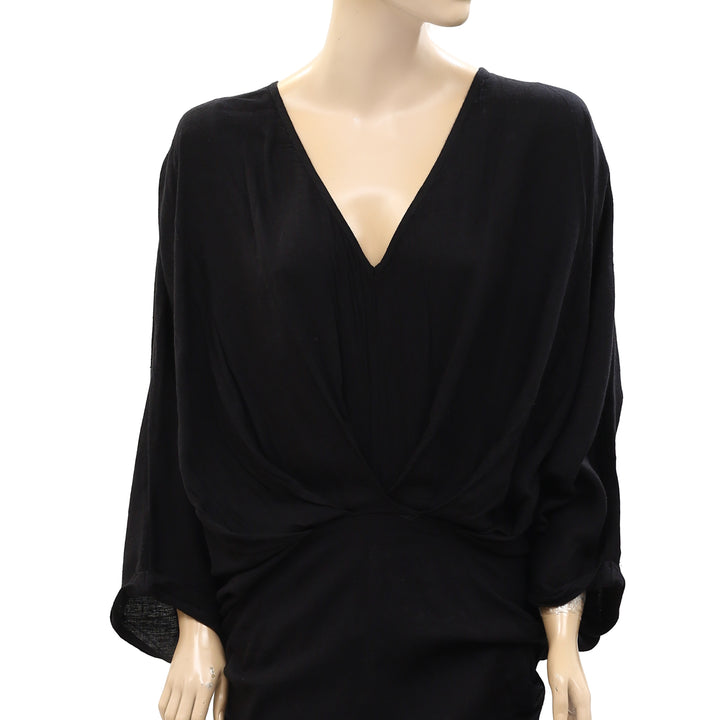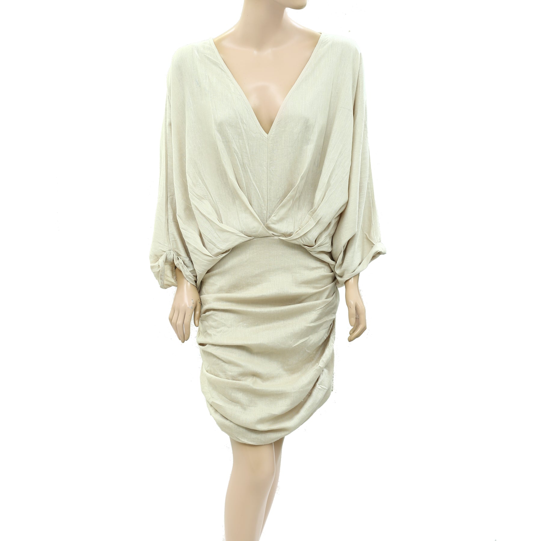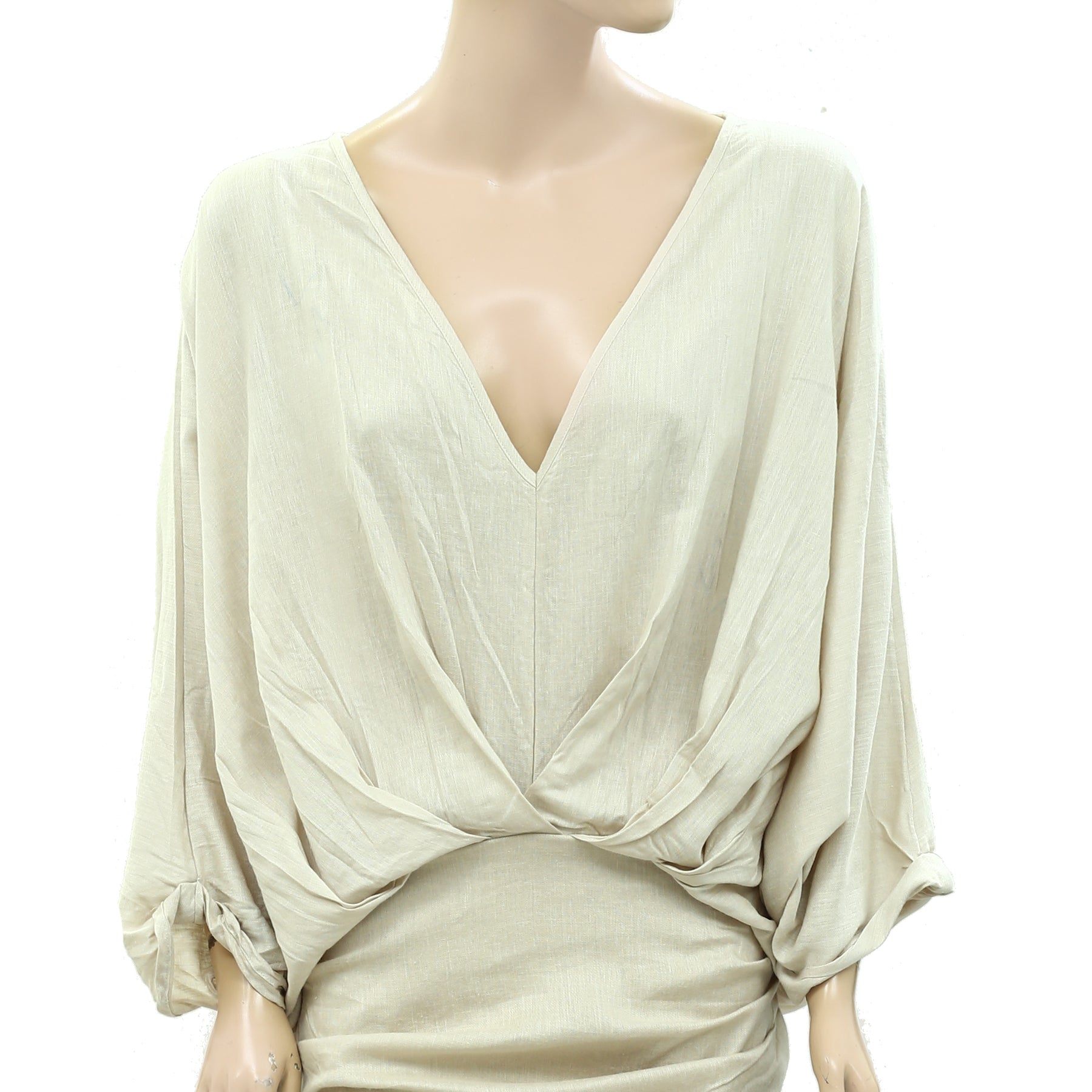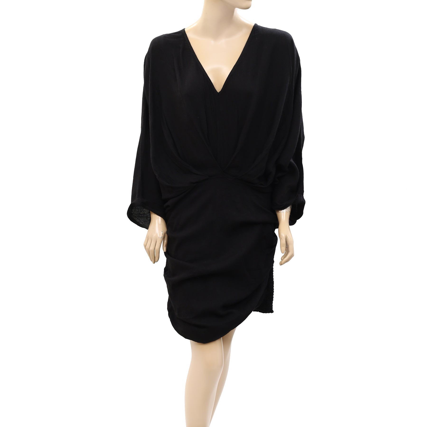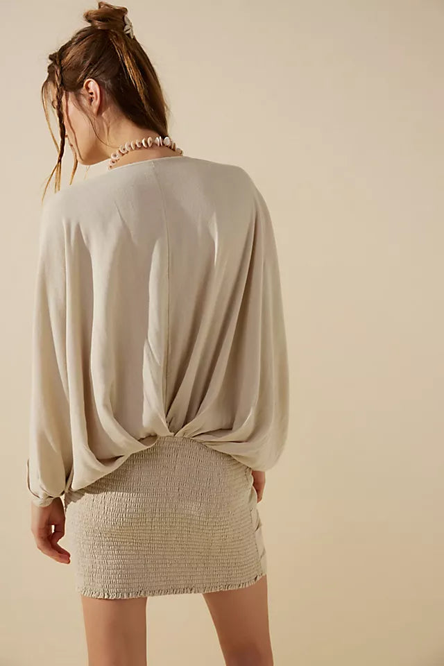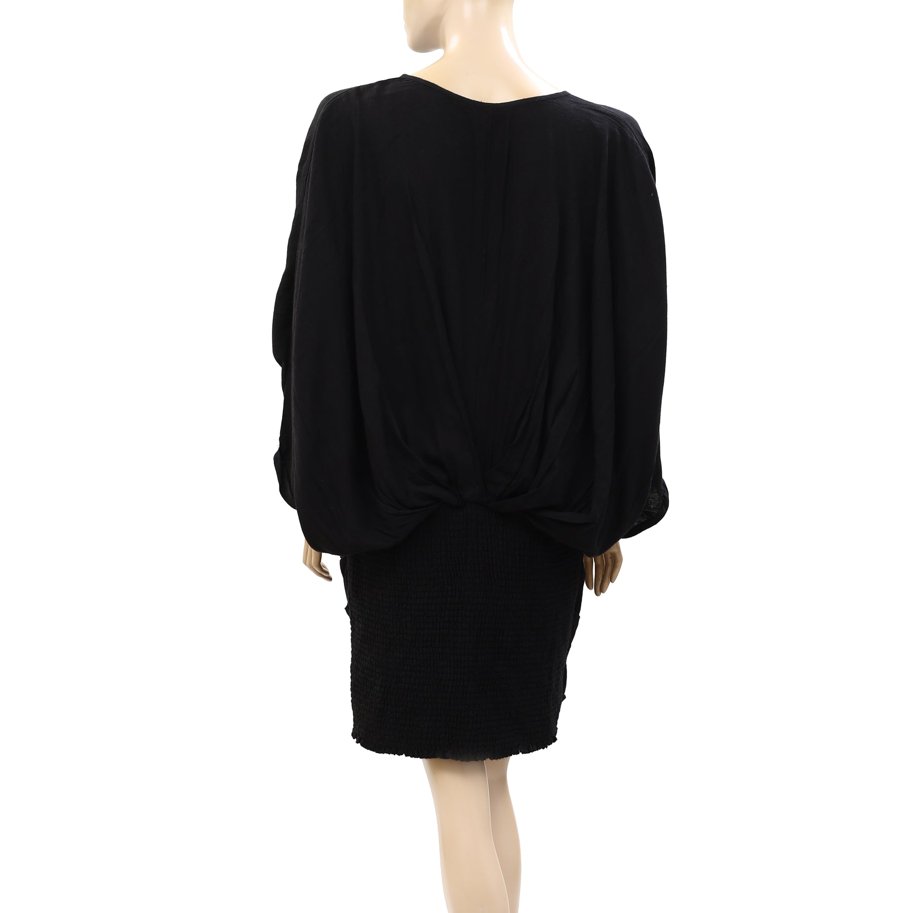 • draped pleating & dolman sleeves,