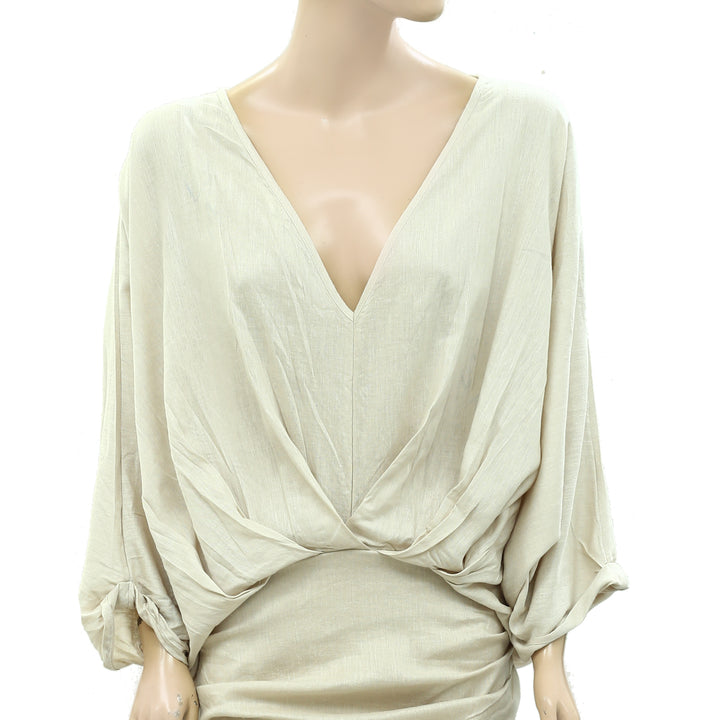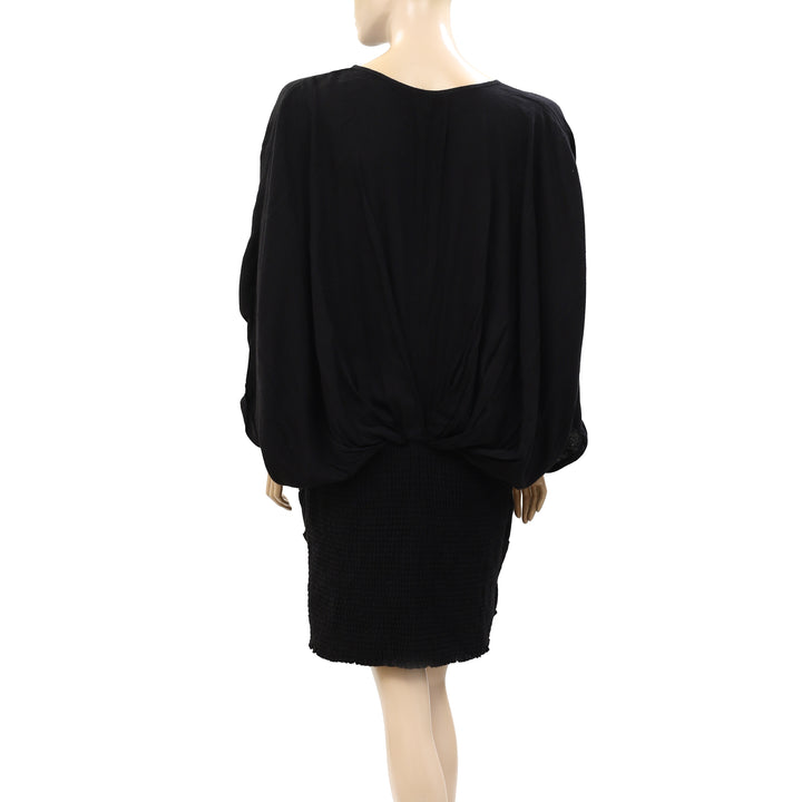 • Billowy draped bodice with cinched skirt design