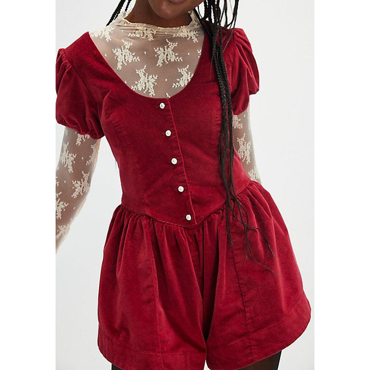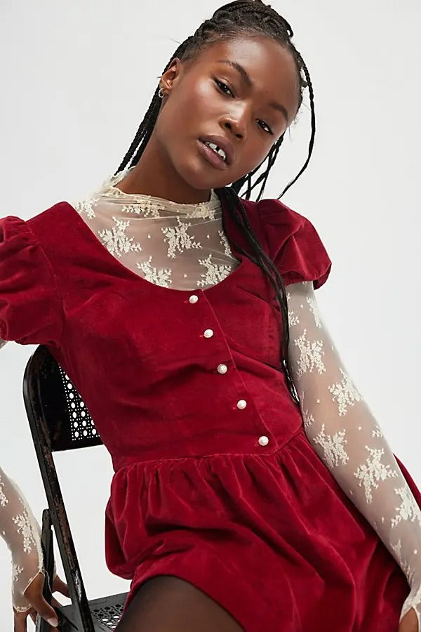 Free People Silver Bells Velvet Romper