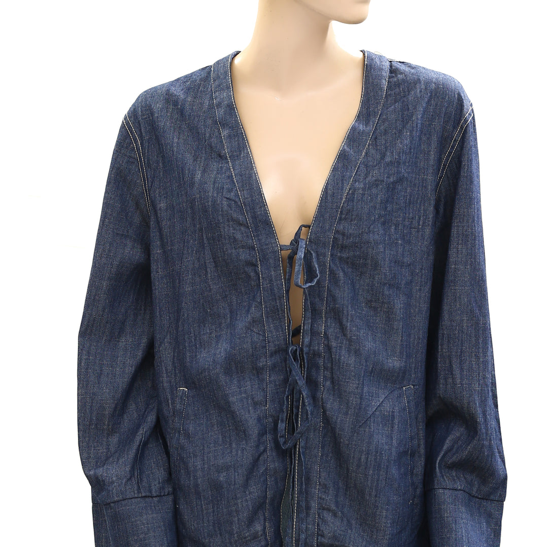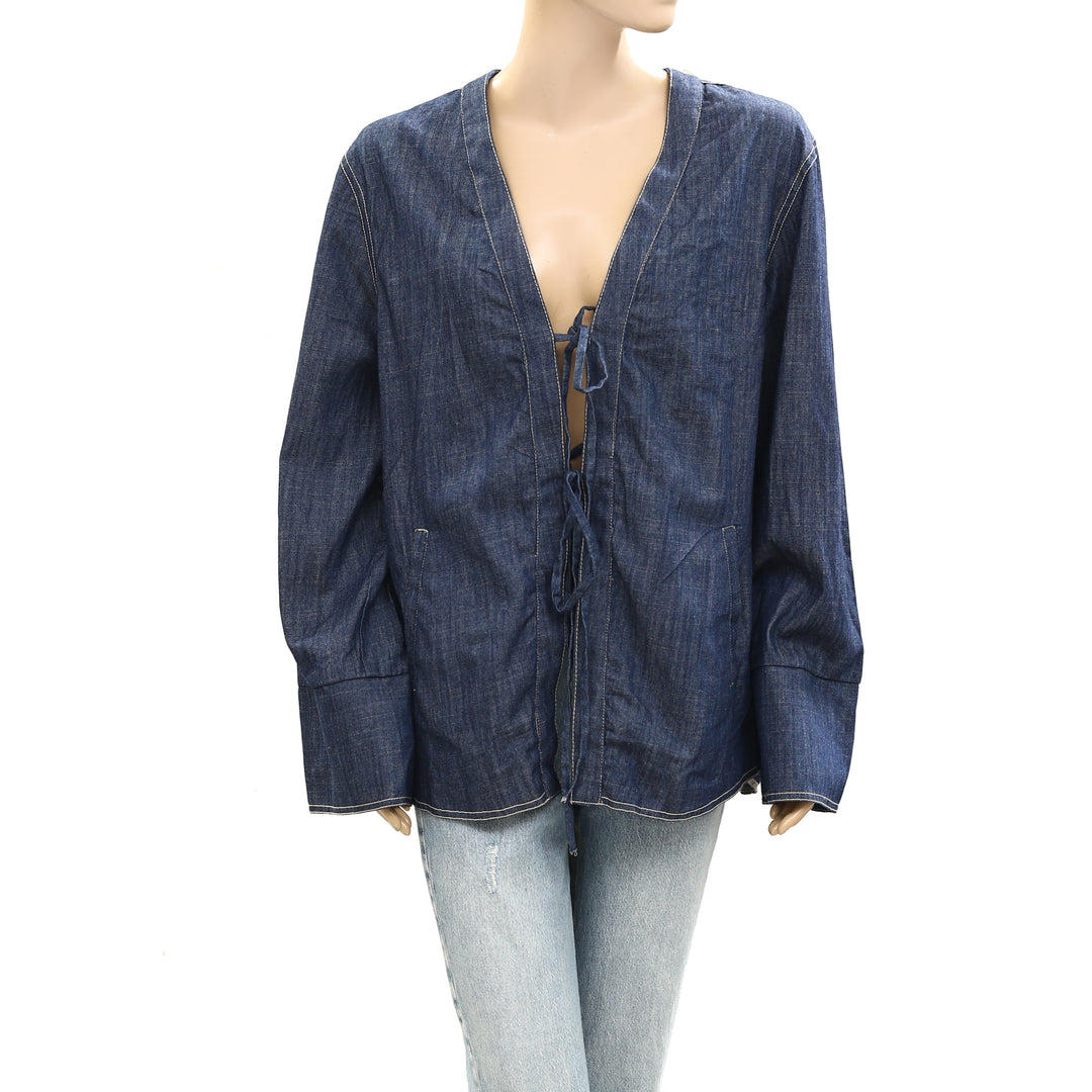 Free People Tie-Front Denim Jacket Top
