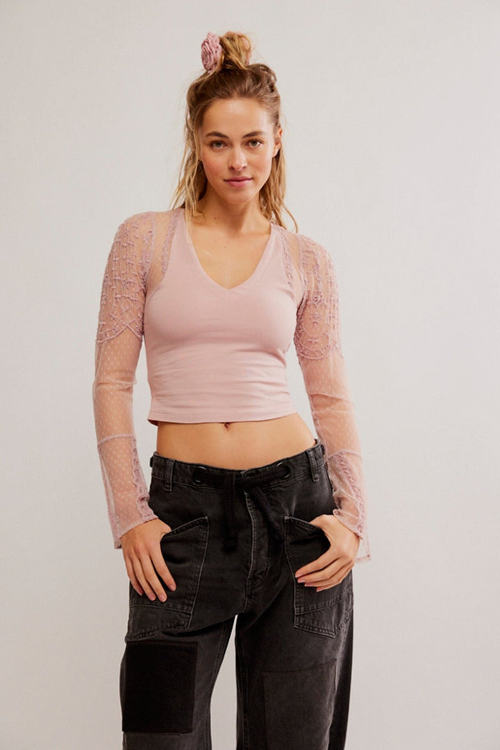 Intimatley Free People Who's That Girl Long-Sleeve Cropped Top