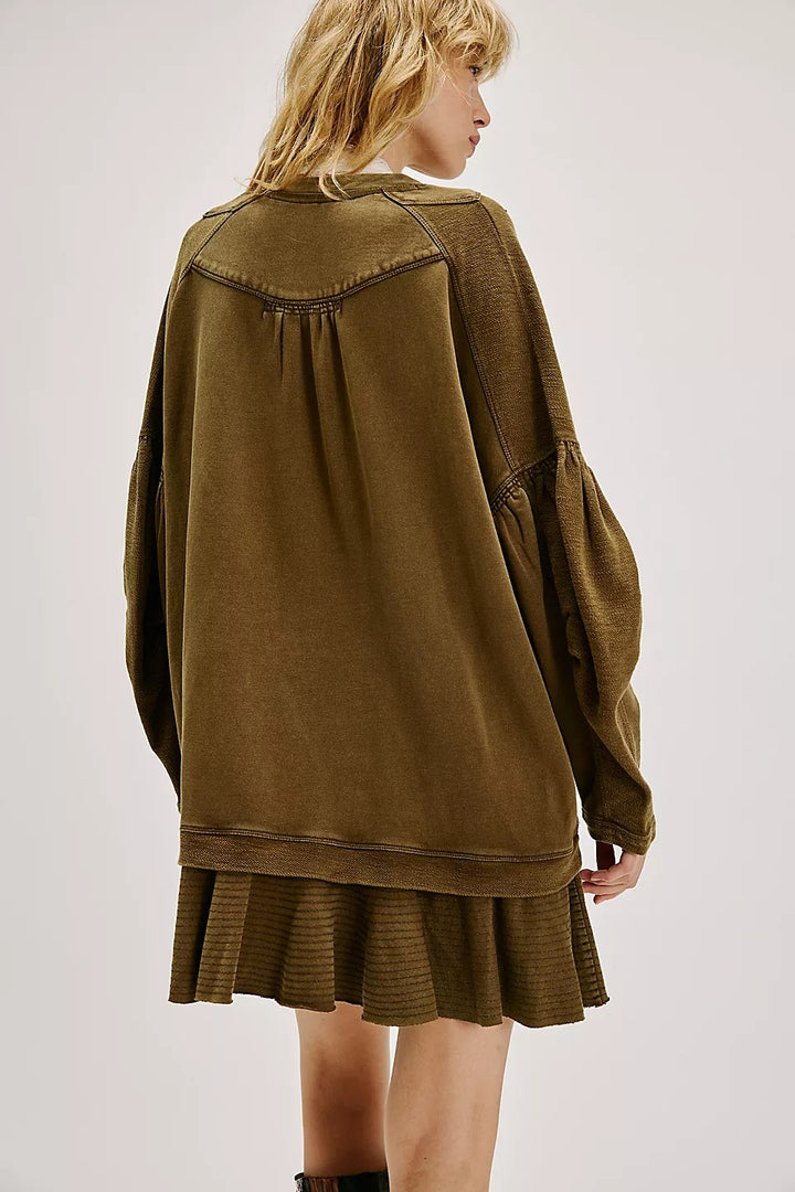 • drop-shoulder sleeves with cuffs