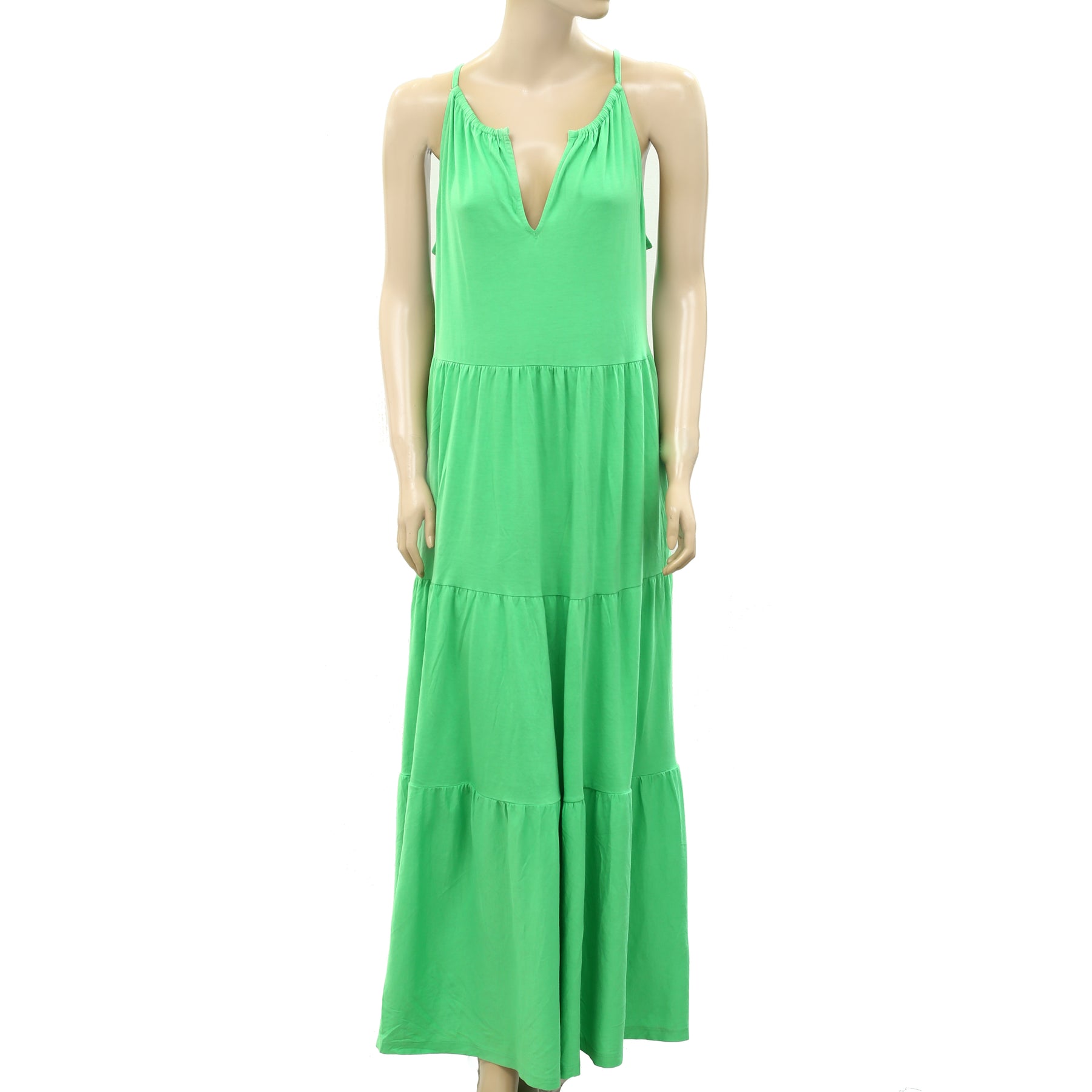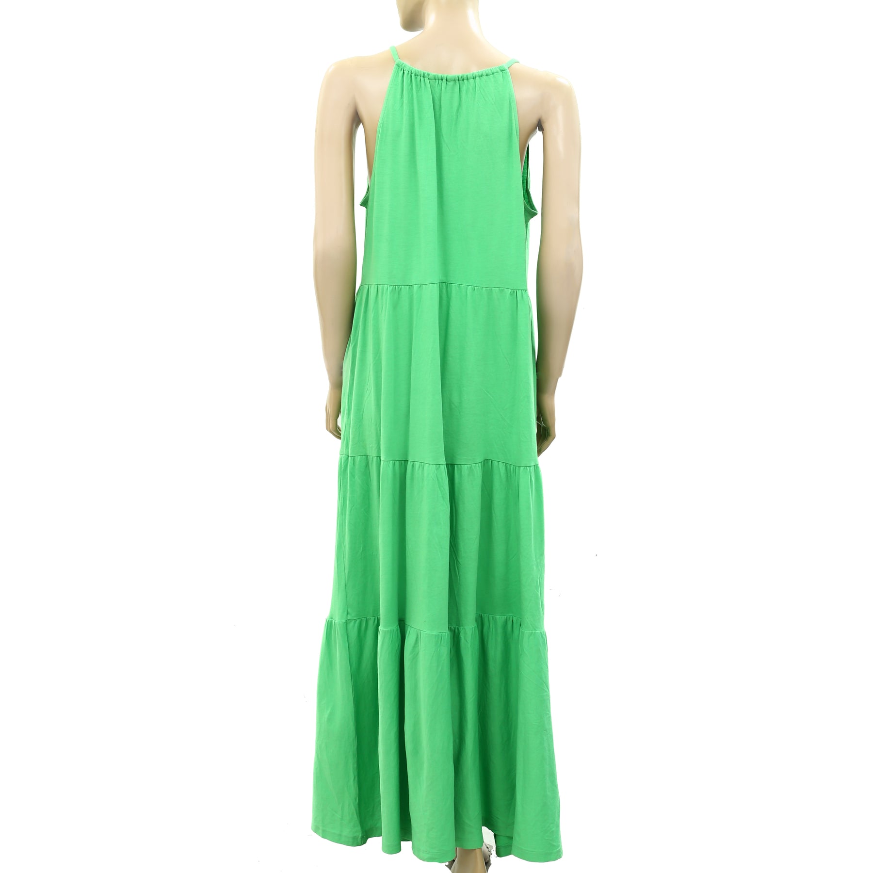 • tiered maxi with a halter neckline and side seam pockets.