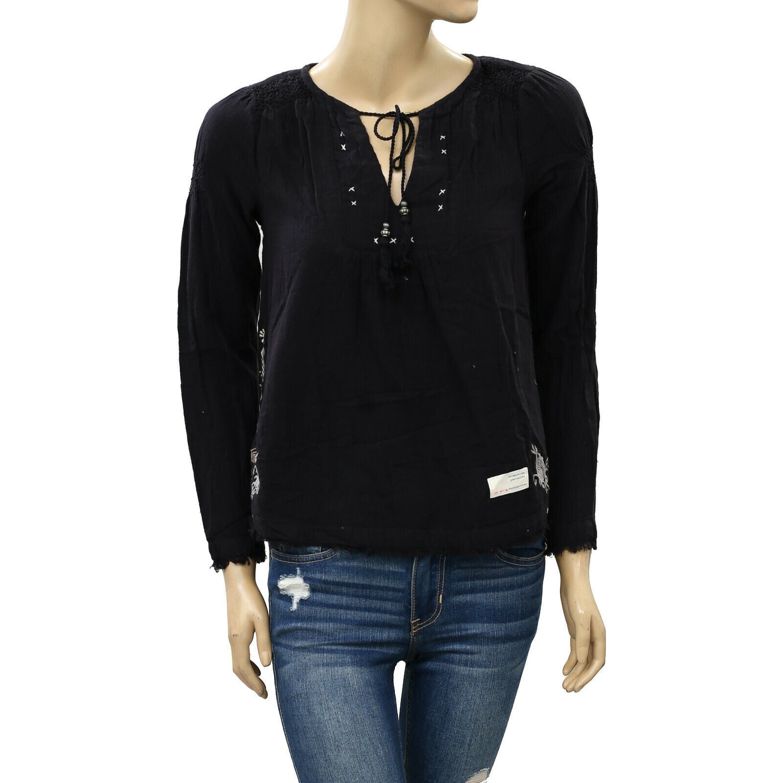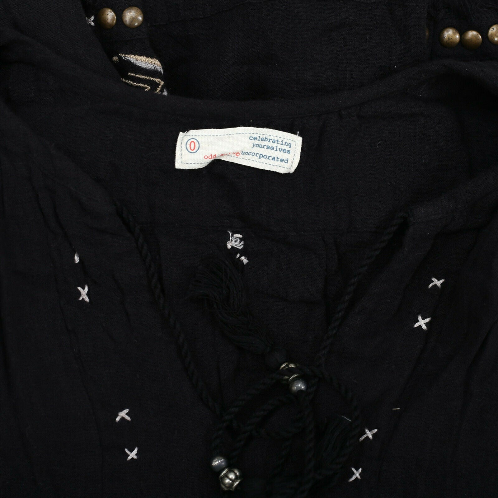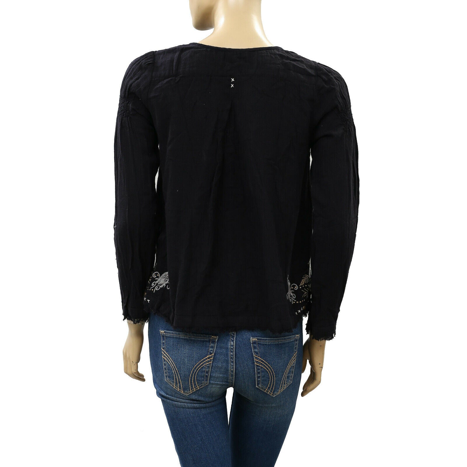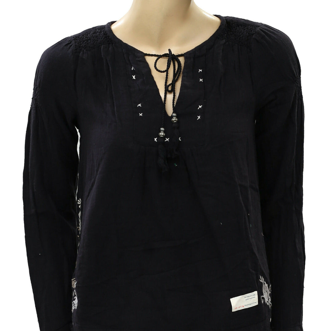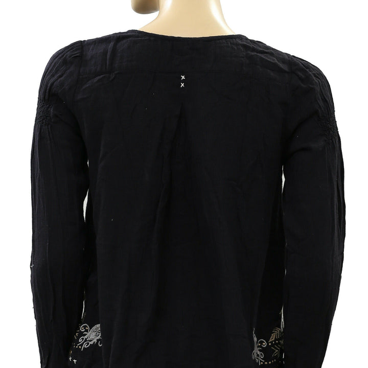 Odd Molly Anthropologie Embroidered Black Blouse Top XS-0