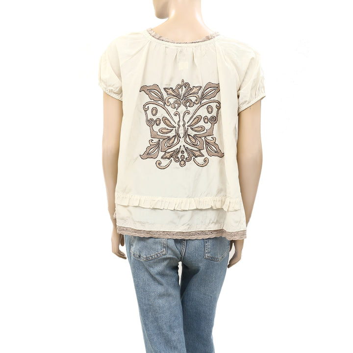 Odd Molly Anthropologie Embroidered Lace Shirt Blouse Top