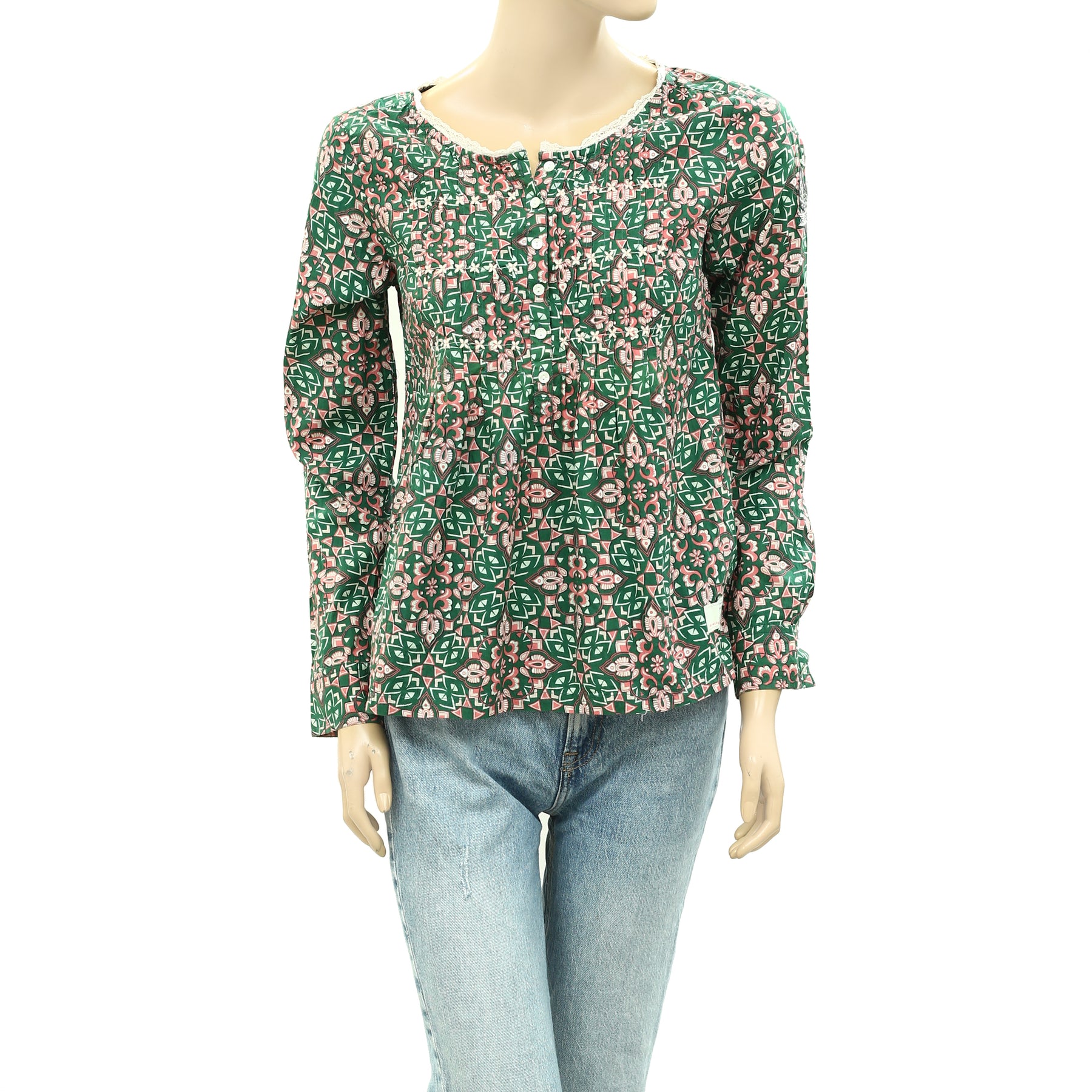 Odd Molly Anthropologie Lace Print Buttondown Shirt Blouse Top