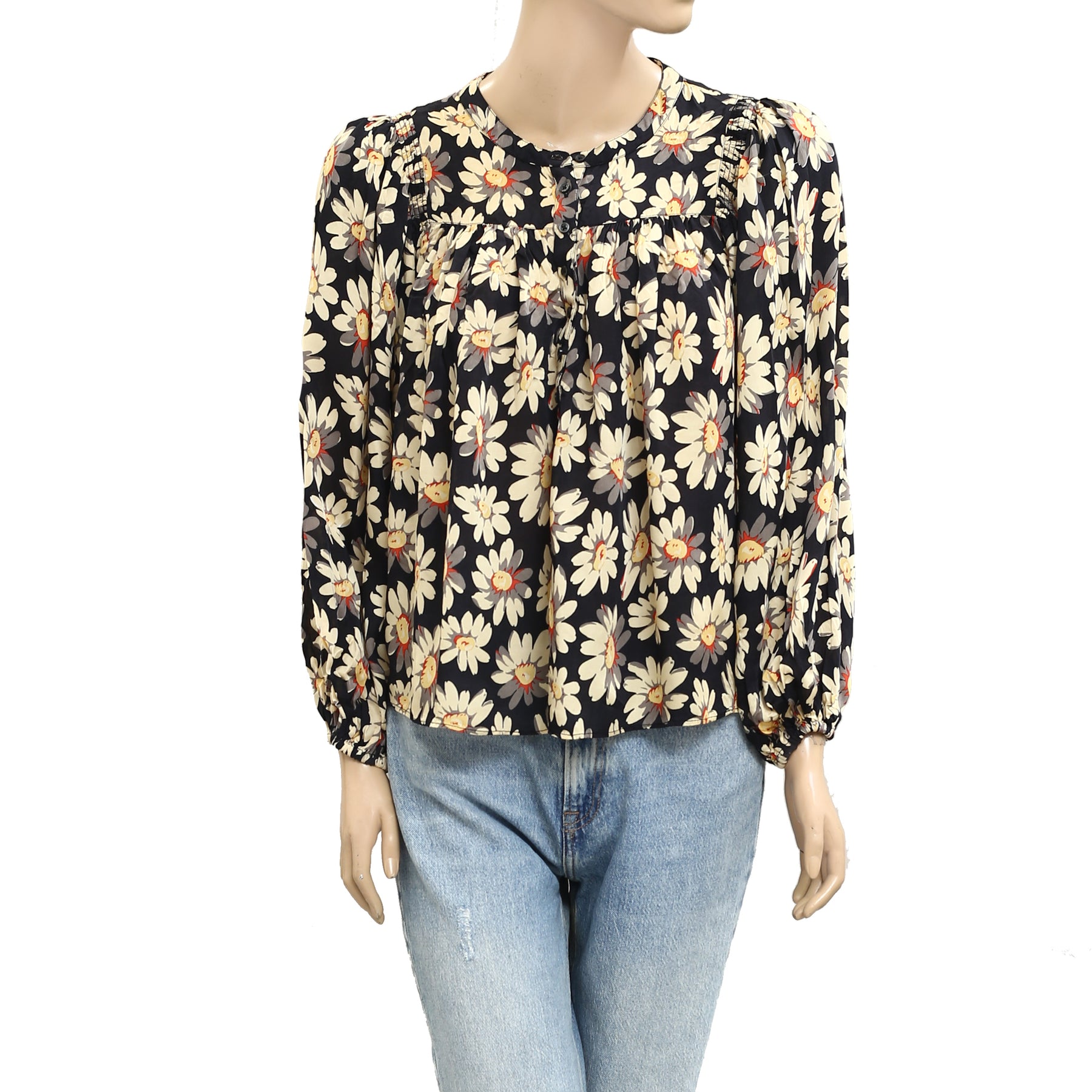 • Long Balloon Sleeves with Elasticized Sleeve Cuffs