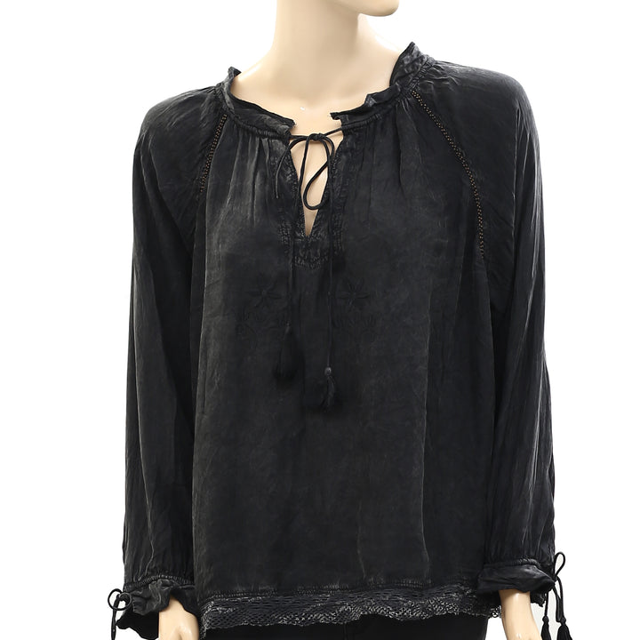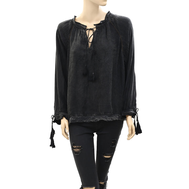 Zadig & Voltaire Theresa Beaded Black Blouse Top