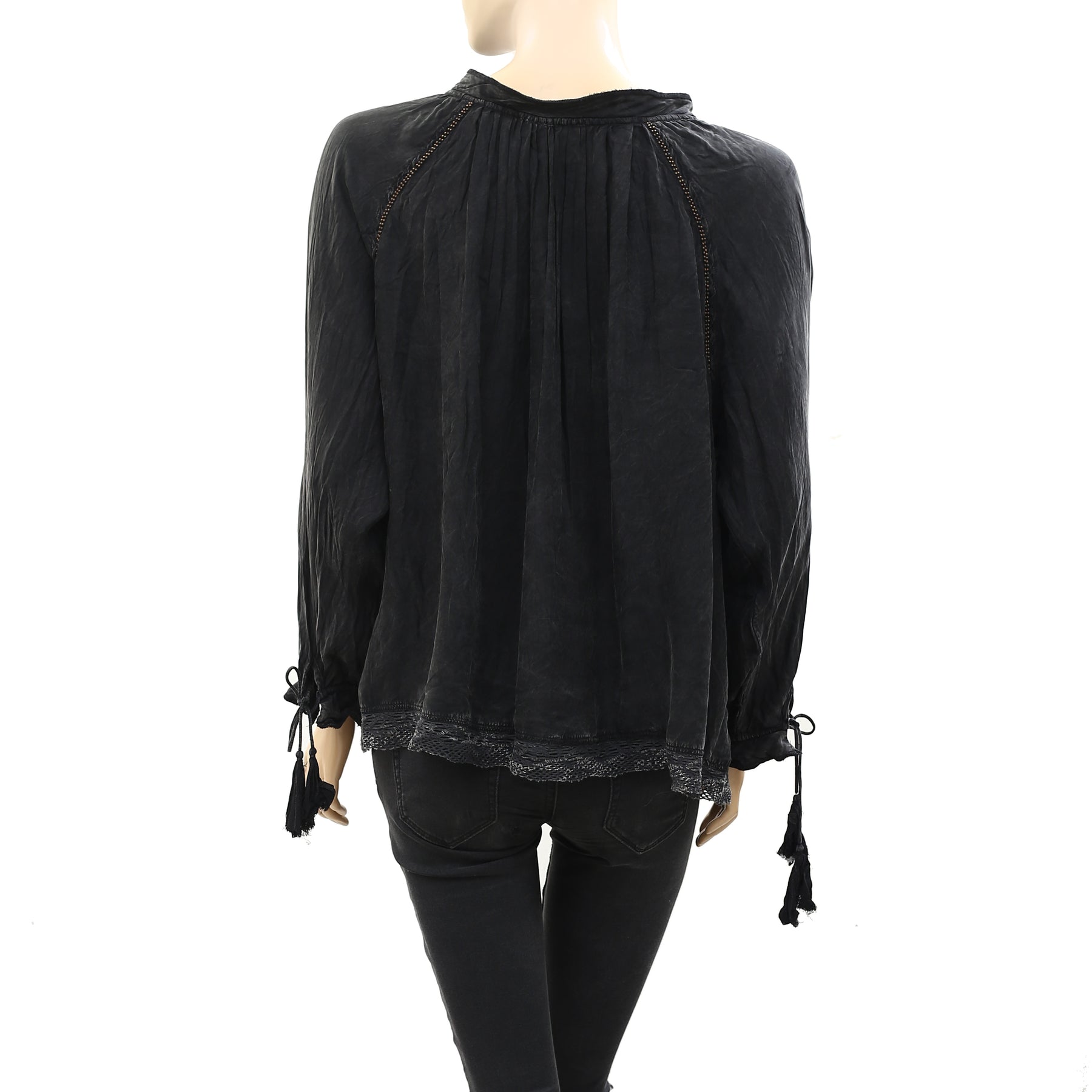 • Tie knot on sleeve cuffs & front