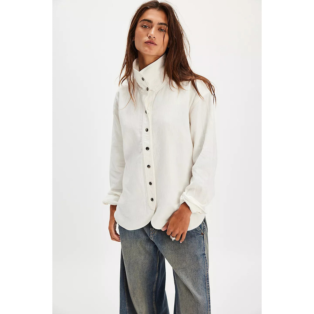 Free people Ribbed Button-Down Knit Blouse Top