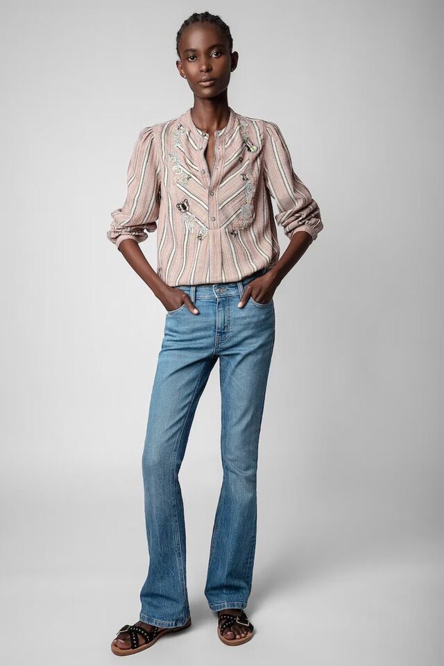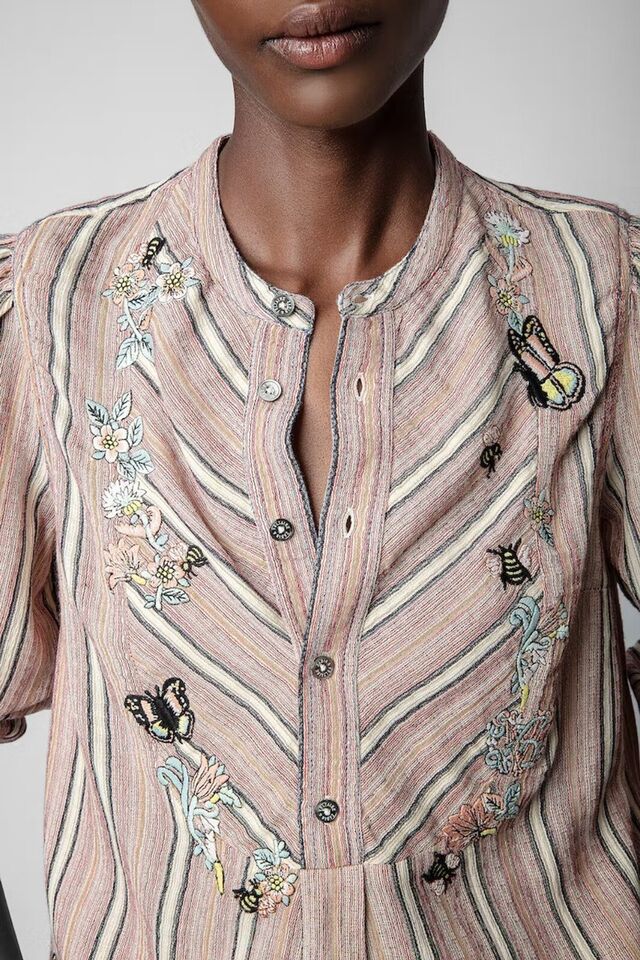 Zadig & Voltaire Teda Raye Brod Shirt Blouse Top